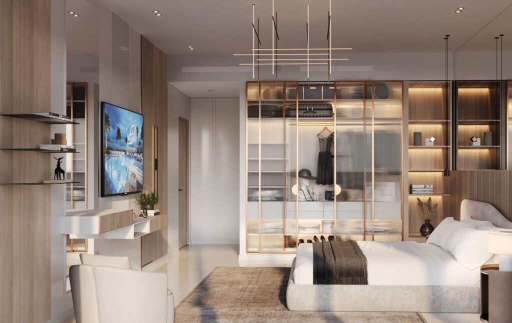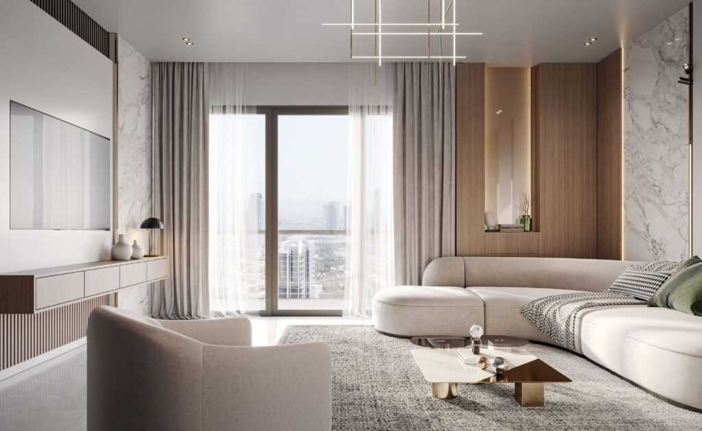 The building showcases Binghatti Developers’ signature contemporary design style while also keeping traditional elements found in Middle Eastern art and architecture in consideration. The unique balcony design of the building offers residents an outdoor space to enjoy without compromising privacy. The building’s prime location ensures a great investment for its future owners.