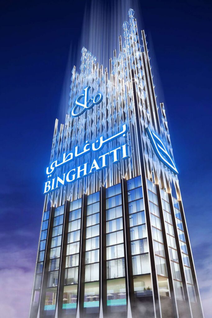 The highest residential tower, Burj Binghatti at Business Bay, Dubai presenting luxury 2 & 3 bedroom Suites & Penthouses developed by Binghatti Developers. This one of a kind diamond-shaped at the peak of the tower reminiscent of an actual crown designed by Jacob & Co, which will have more than 112-storey and provide residents an iconic way of life.